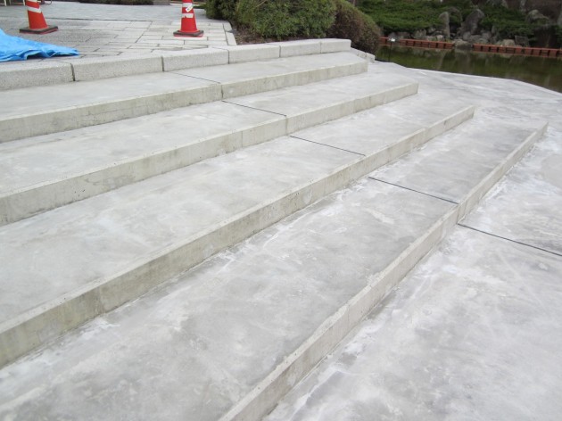 スイレン池のまわりの階段のコンクリートに施工しました。