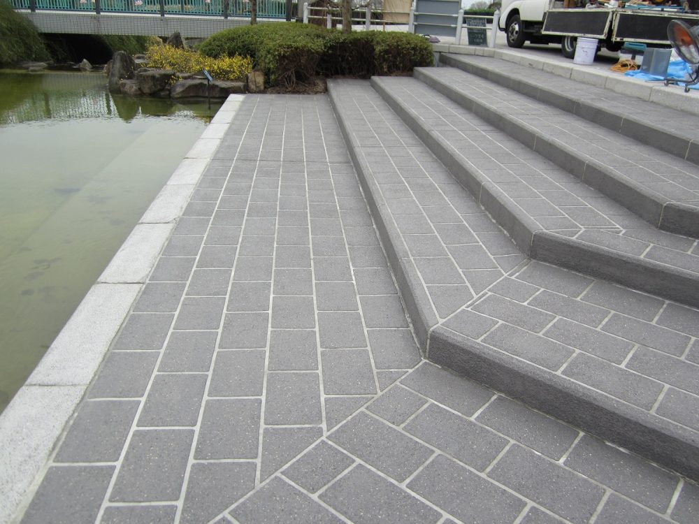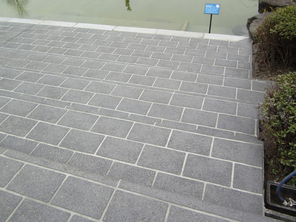 琵琶湖の畔にあります、草津市立水生植物公園 みずの森 園内のスイレン池のコンクリート部分の階段にモデリング舗装を施しました。
