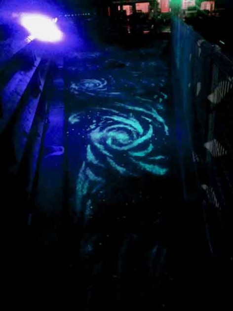 癒しの色・ブルーを使った 蓄光石樹脂舗装施工 徳島阿波おどり空港 徳島阿波おどり空港の電光掲示板の裏のアスファルト路面に施工しました。 (施工前) 徳島産の自然石を骨材と使用しております。 現地で材料を練り施工していくことで、お好みのデザインを入れることも可能です。 (施工後) (施工後) (施工後) (ブラックライト照射) 隠れ癒しスポットです。 蓄光石のブルーの光りよって心を和ませてくれます。