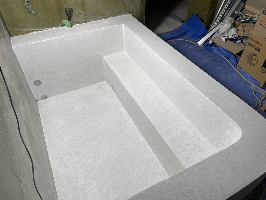 近年では、樹脂を混入した材料による目地なし一枚仕上げも可能になりました。